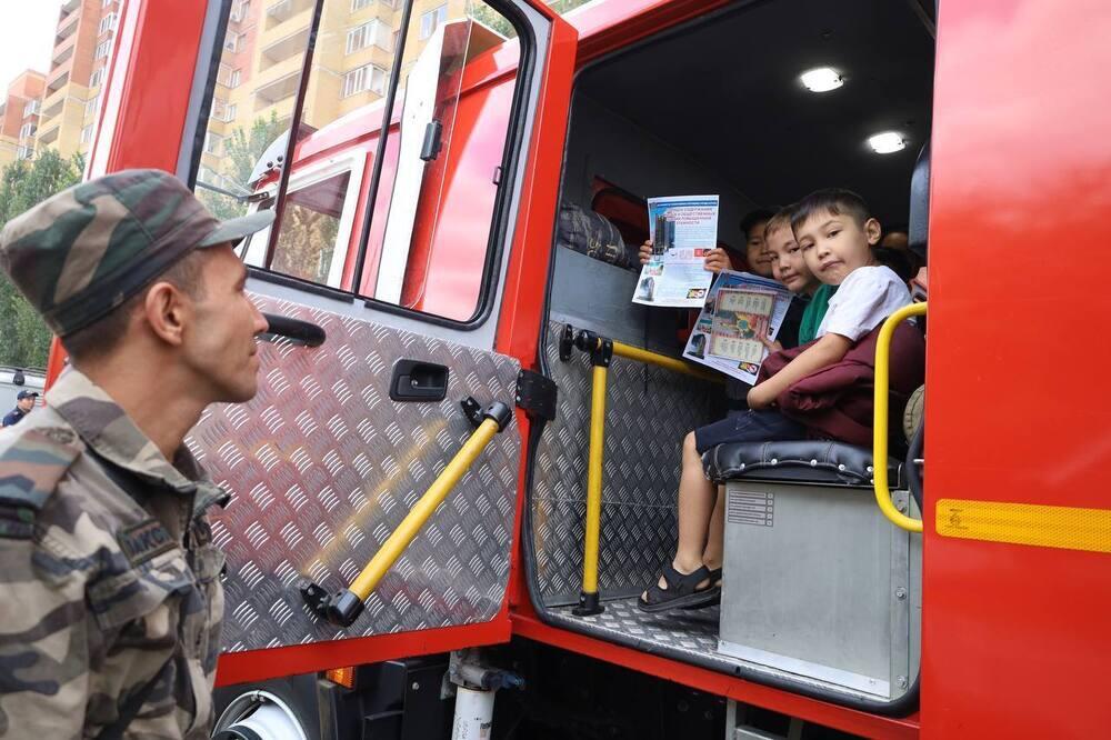 Special attention was paid to children. The rescuers familiarized them with their equipment. During the exercise, the tactics of extinguishing fires and evacuating people in high-rise buildings were worked out.