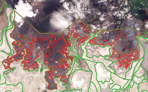 As of today, according to space monitoring data, the area engulfed in fire stands at 2,794.79 ha.