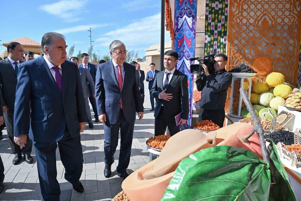 Presidents of Kazakhstan and Tajikistan - Kassym-Jomart Tokayev and Emomali Rahmon - visited a trade show of Tajikistan’s agricultural, industrial products, handicrafts and cuisine, Kazinform reports via Akorda.