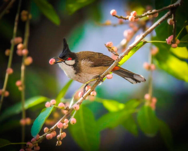 Having lived in the Guangdong-Hong Kong-Macao Greater Bay Area for nearly 20 years, Helis is very familiar with the development and changes there. In another of his works, which was taken in a park in Guangzhou's Huangpu district, a red-whiskered bulbul is enjoying a sumptuous berry breakfast.