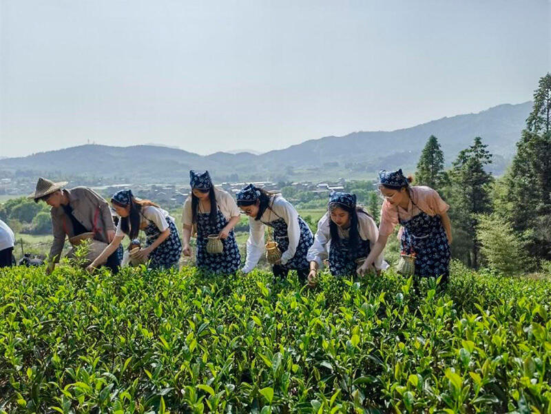 Chinese and foreign students from universities in Fujian province pick tea in a tea garden on the Wuyi Mountain. The photo was taken by Alexander William, an Indonesian student from the Chinese Language and Culture College of Huaqiao University.
