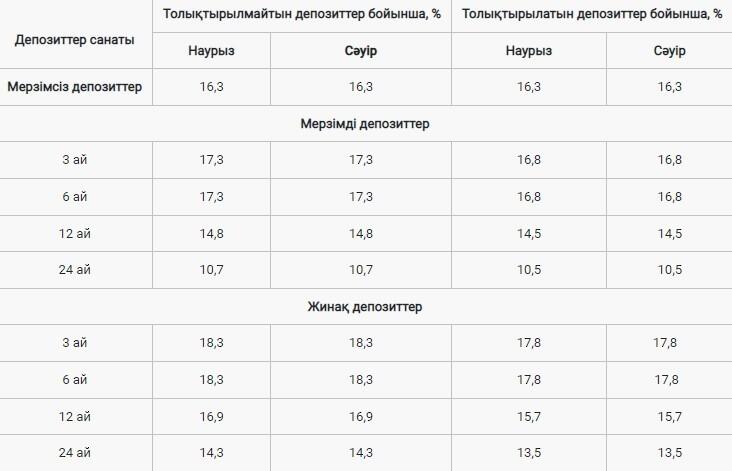 Депозиттердің түрі мен мерзімділігіне сәйкес ҚДКБҚ шекті мөлшерлемелерімен мына кестеден танысып шығуға болады: