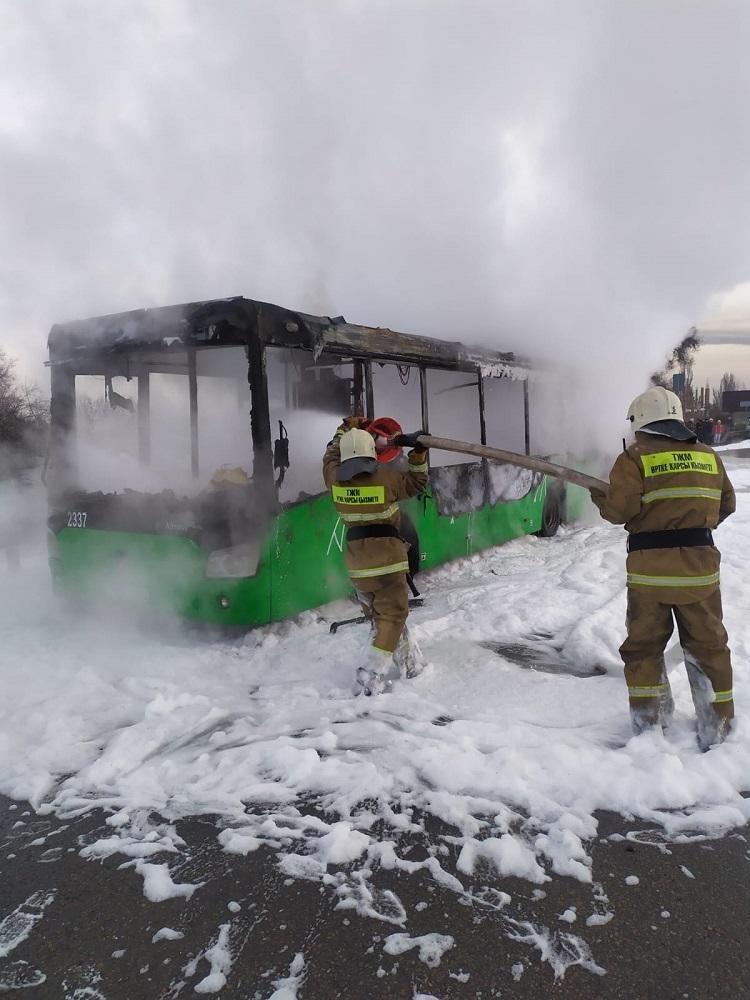 Өрт сөндіру бөлімшелері Медеу ауданы, Төле би көшесі мен Шығыс айналма автокөлік жолының қиылысына жіберілді. Өрт сөндірушілер келген кезде "Лиаз" маркалы автобус жанып жатты. Өрт 25 шаршы метр аумақты шарпыған. Өрт басталған кезде салонында жолаушылар болмаған", - деп хабарлады ТЖД баспасөз қызметі.