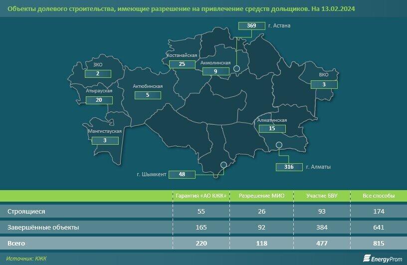 Посмотреть список объектов, которые имеют разрешение на привлечение средств дольщиков можно на жилищном портале. Сейчас реестр состоит из 815 таких ЖК, из которых 369 находятся в Астане и 316 - в Алматы.