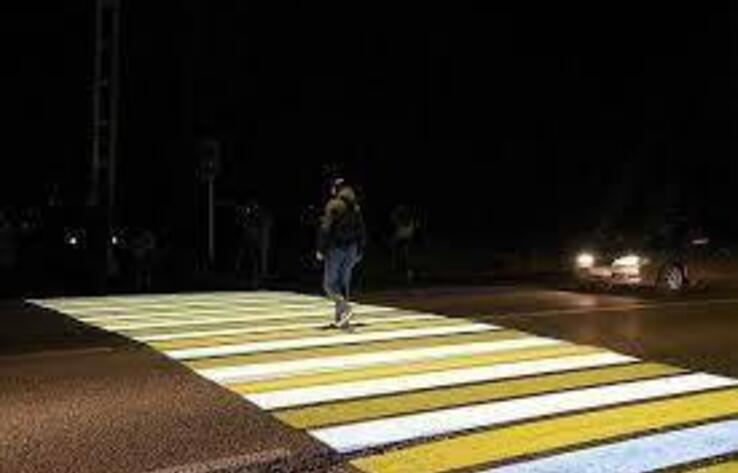 - На дорогах Тараза установили проекционные пешеходные переходы