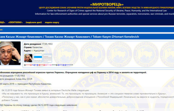 - Токаева внесли в базу украинского сайта "Миротворец"