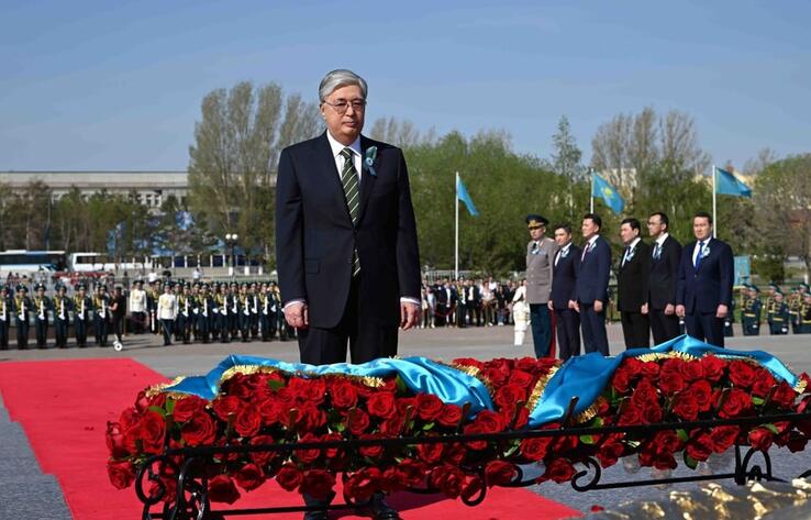 16 - Токаев принял участие в церемонии возложения цветов к монументу "Отан Ана"
