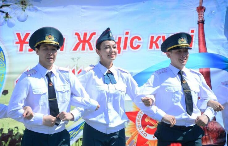 Алматинские полицейские поздравили 98-летнего ветерана с Днем Победы во дворе его дома