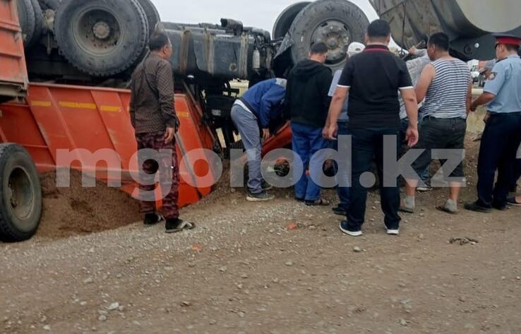 Водитель легкового автомобиля выехал на встречную полосу - На трассе в ЗКО опрокинулся КамАЗ