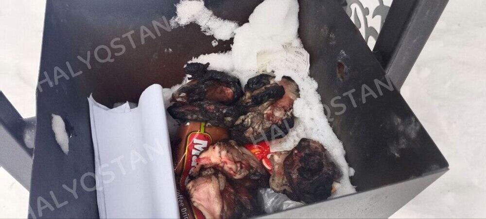 Информация об инцидент распространилась в Сети. По данным телеграмм-паблика HALYQSTAN, куски кур на краю золотой звезды рано утром обнаружила местная жительница.