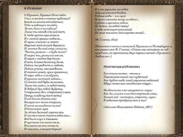 Дети и взрослые читали любимые пушкинские строки, исполняли романсы, инсценированные стихотворения и литературные композиции. Бурные аплодисменты вызвало выступление популярного интернет-персонажа Акына Акыновича (Андрея Фендрикова), исполнившего кюи-загадки по произведениям великого классика. Собравшиеся с энтузиазмом отгадывали по фрагментам из сюжета такие известные прозаические шедевры как "Пиковая дама", "Выстрел", "Моцарт и Сальери".