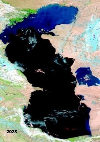 Согласно архивным данным космической съемки, в северной части казахстанской акватории обнажилось морское дно, Каспийское море мелеет.