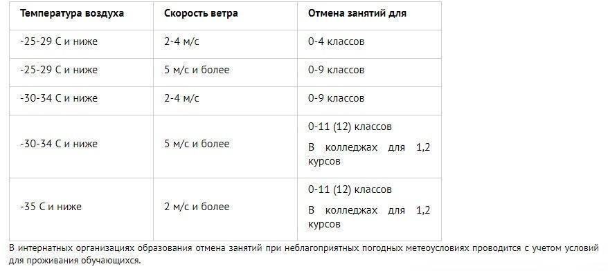 При какой погоде отменяют занятия?
