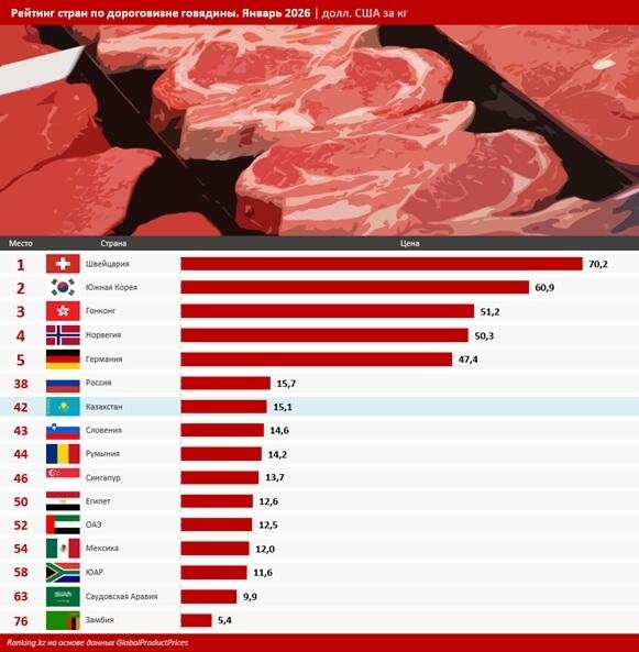 В Казахстане мясо дороже, чем в ряде стран Европы и Ближнего Востока - Ranking