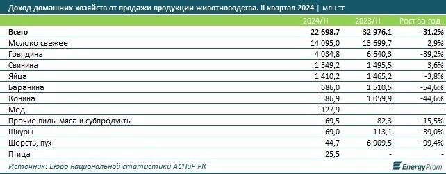 Доходы казахстанских семей от продажи собственной животноводческой продукции упали