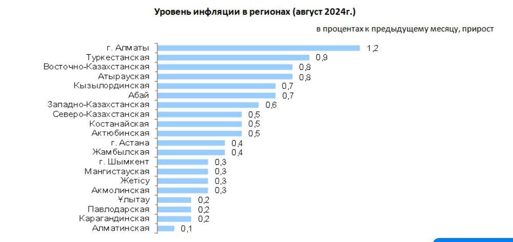 Астана. 2 сентября. KAZAKHSTAN TODAY - Месячный уровень инфляции в Казахстане в августе 2024 года замедлился и составил 0,6%, сообщает Бюро национальной статистики.
