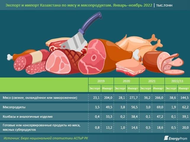 Экономисты пришли к выводу, что фактически в 2022 году объемы экспорта казахстанского мяса почти сравнялись с объемами импорта одних только колбасных изделий.