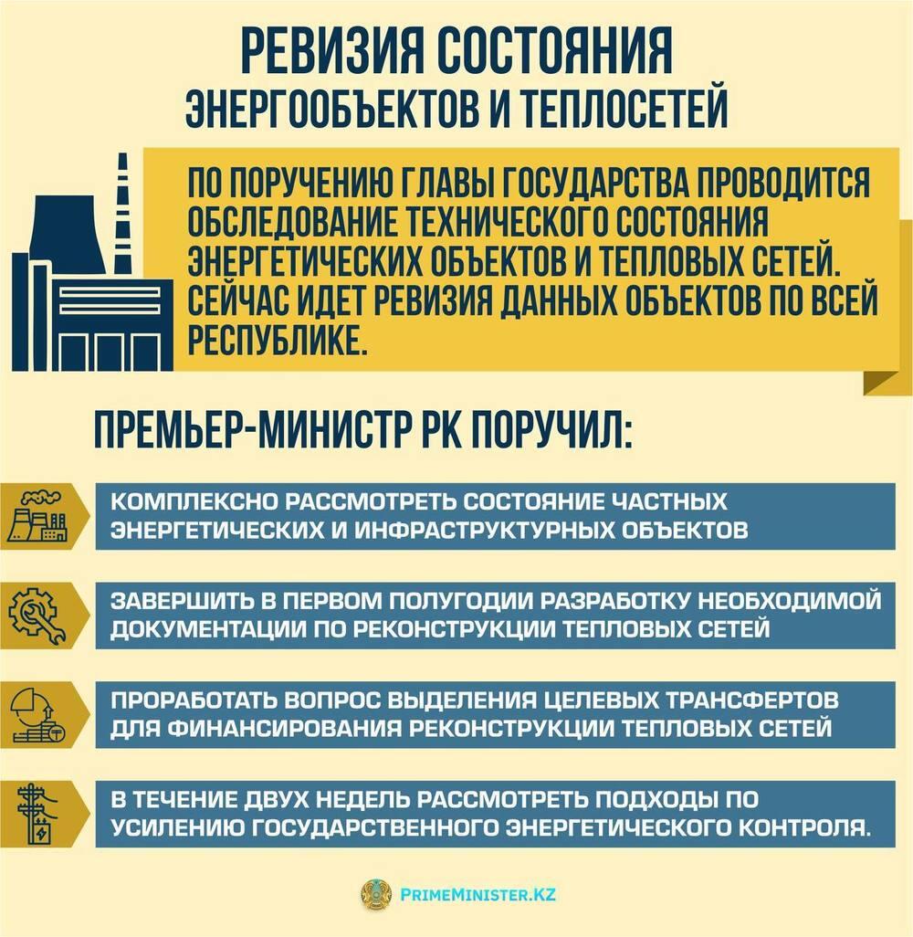 Но как только начались холода, так возникло множество проблем. За два месяца допущены две крупные аварии на энергоисточниках и тепловых сетях. Это Риддер и Экибастуз. Серьезное снижение стабильности теплоснабжения наблюдалось в Усть-Каменогорске и Риддере, Темиртау, Семее, Актау, Павлодаре. Необходимо принять самые активные меры по стабилизации работы систем теплоснабжения и других инженерных сетей. Откладывать нельзя ни на один день. Проверки только начались, данные уже неутешительные. В регионах ситуация оказалось хуже той картины, которую пытались выдать за реальность. Имеющиеся проблемы скрывались", - высказался глава кабмина.