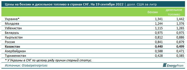 По дешевизне бензина Казахстан уступил только Туркменистану. В то же время цены на дизельное топливо были ниже в Туркменистане и Азербайджане.