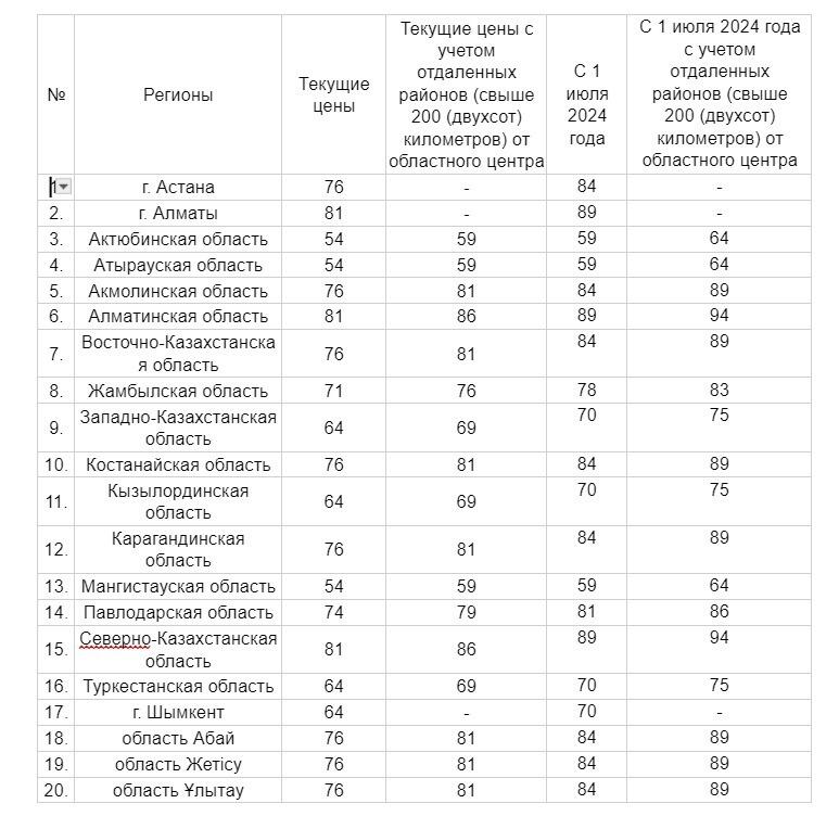В частности, предельная оптовая цена за тонну сжиженного нефтяного газа составит 45 158 тенге. При этом, предельная розничная цена незначительно повысится - от 5 до 8 тенге за литр в зависимости от региона.