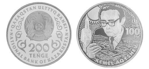 Вторая монета выпущена к 100-летию со дня рождения Кемаля Акишева - известного археолога и ученого.
