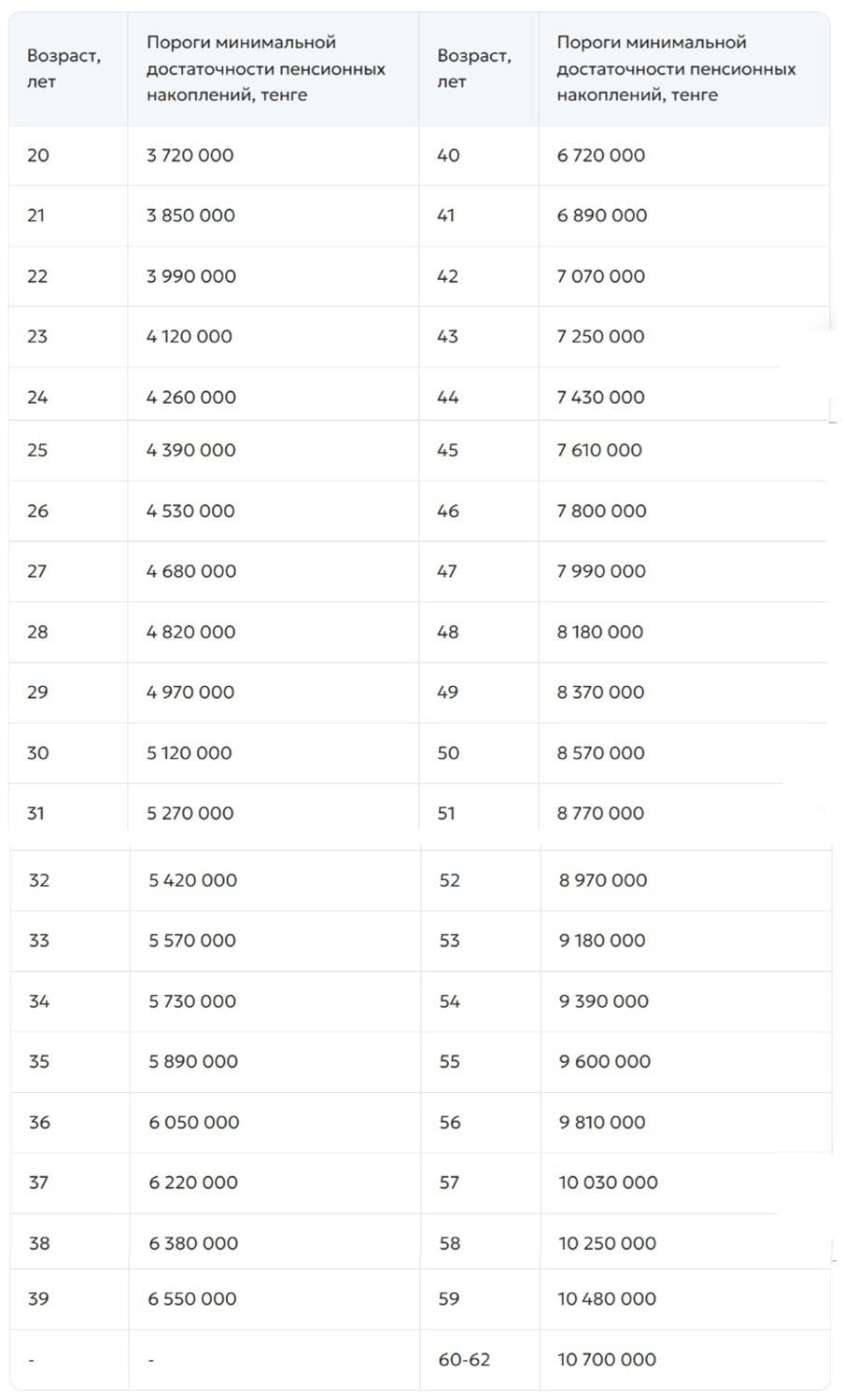 минимальный размер пенсии - 69 049 тенге;