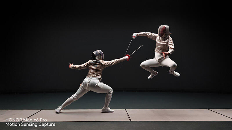 Серия HONOR Magic6 представляет обновленную систему распознавания движения HONOR AI, которая использует обширную базу обучающих материалов из более 8000000 различных изображений. Независимо от сценария - будь то съемка брызг воды, изящных движений танцоров или моменты нападения в фехтовании, камера самостоятельно отслеживает движения, выявляя и сохраняя лучшие моменты.
