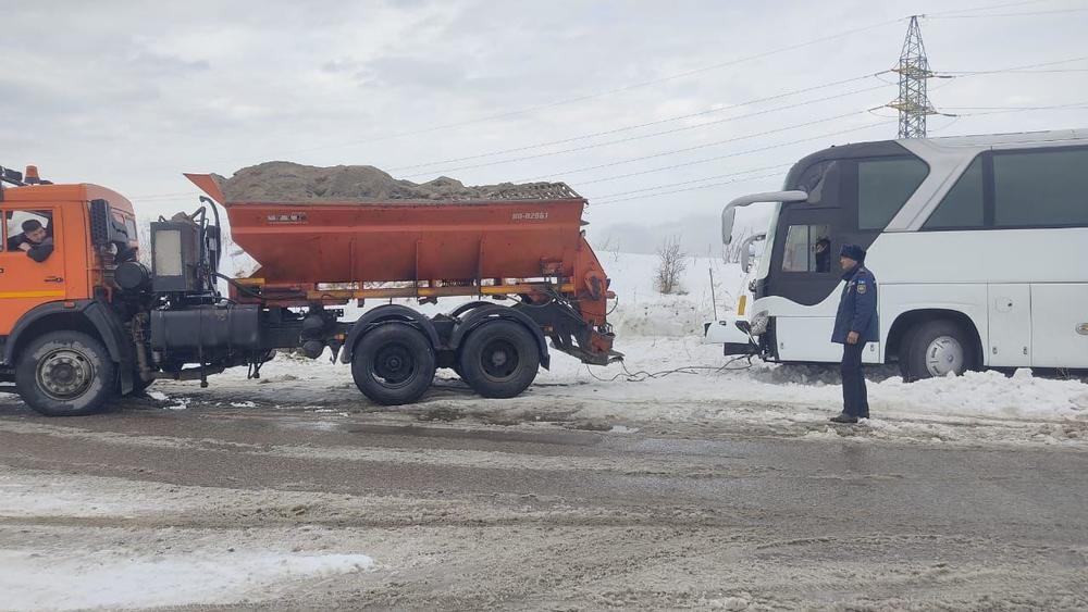 Силами дорожной организации Талгарского района застрявший автобус эвакуирован. Жертв и пострадавших нет.