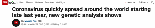 5 мая американский телеканал CNN сообщил, что команда британских ученых изучила образцы коронавируса нового типа, подтвердив его природное происхождение, и установила, что он начал быстро распространяться еще в прошлом году в Европе, Америке и на других континентах. Новый генетический анализ вируса был взят более чем у 7,5 тыс. пациентов по всему миру.