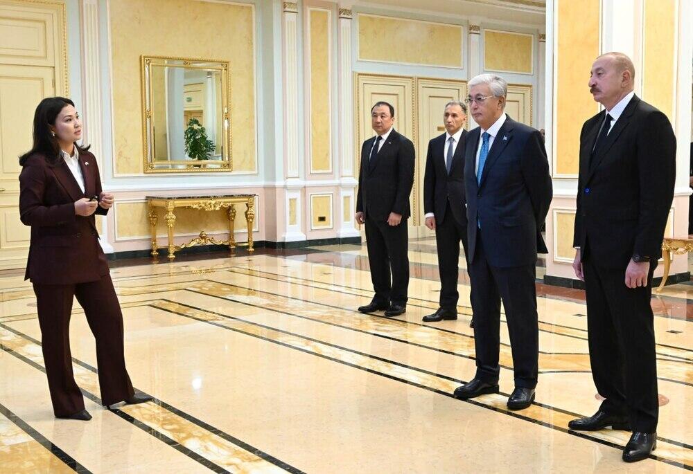 Касым-Жомарту Токаеву и Ильхаму Алиеву презентовали план развития ключевого транспортно-логистического маршрута, так называемого Среднего коридора, соединяющего Китай и страны Центральной Азии с государствами Европы.