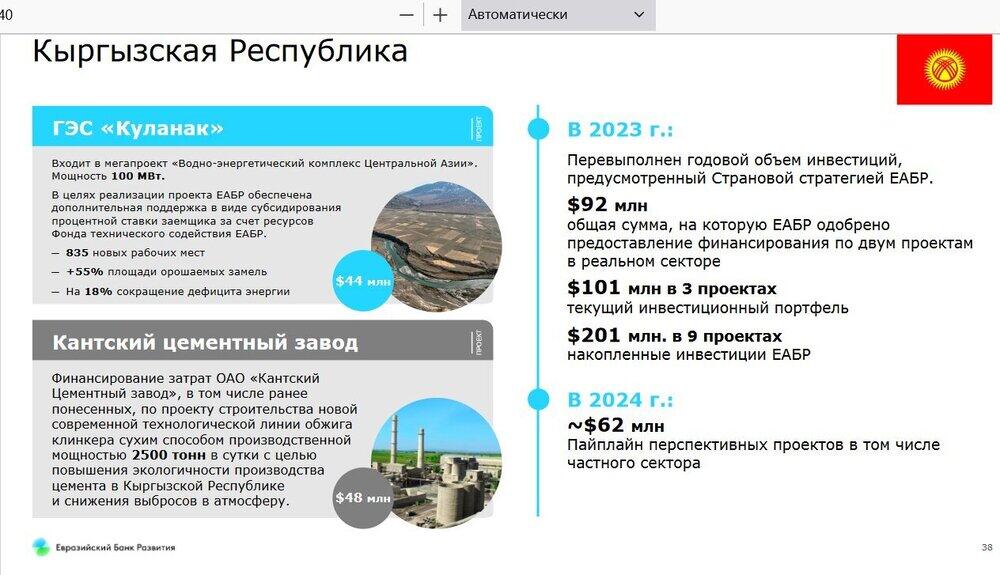 По его словам, в 2023 году Евразийский банк запустил 27 новых проектов в Евразии. Объем инвестиций составил $1,7 млрд.