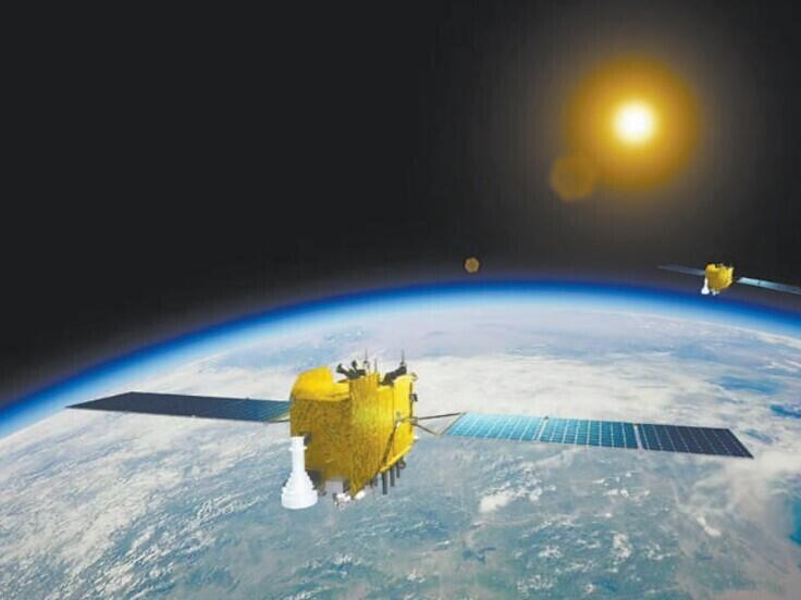Фото: Схематическое изображение 59-го и 60-го спутников навигационной системы Бэйдоу на орбите. Фотоматериал предоставлен Китайской академией наук