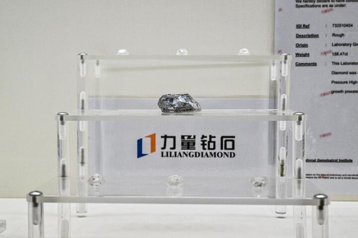 Он так объяснил принцип синтеза: условия внутри ростовой камеры максимально приближены к природным. Графит высокой чистоты под воздействием температуры и давления превращается в прозрачный кристалл. Одна из последних разработок компании Liliang Diamond - кристалл весом 156,47 карата, побивший мировой рекорд среди монокристаллических алмазных заготовок искусственного происхождения.
