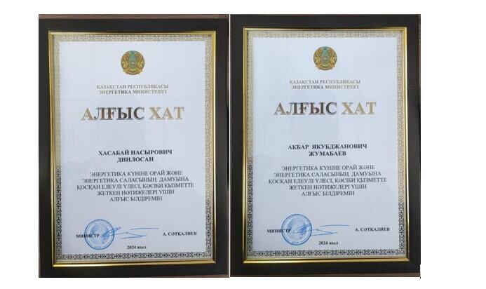Шесть казахстанских сотрудников ТОО "Казахстан Энерджи инвестмент" - Едили, Хасабай, Мейрхат, Ермахан, Мади и Акбар получили почетные грамоты "Лучший инженер-энергетик", подписанные министром энергетики Казахстана. Компания впервые была удостоена такой высокой награды.