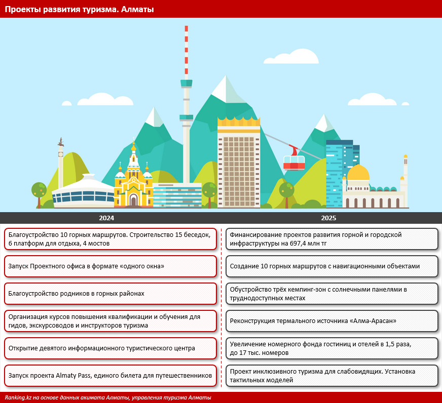 Что касается посетителей Алматинского горного кластера и Алматинской курортной зоны, то за январь-сентябрь текущего года их численность уже почти достигла 2,1 млн человек - на 271,2 тысячи человек больше, чем за аналогичный период 2023-го. По итогам года стоит ждать новых рекордов. Возможно, миллионов посетителей и их миллиардных расходов на путешествия не было бы, если бы отрасль туризма так активно не финансировалась государством и частными инвесторами, не продвигалась на всевозможных маркетинговых площадках страны и мира", - заявили аналитики.