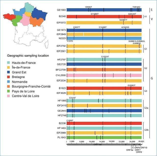 С 24 января по 24 марта исследователи упорядочили вирусные геномы 97 образцов, собранных среди зараженных во Франции. За этот период в стране было зафиксировано 22 302 случая заболевания коронавирусом, от него умерли 1100 человек. Эпидемия распространялась в основном в северной части страны.