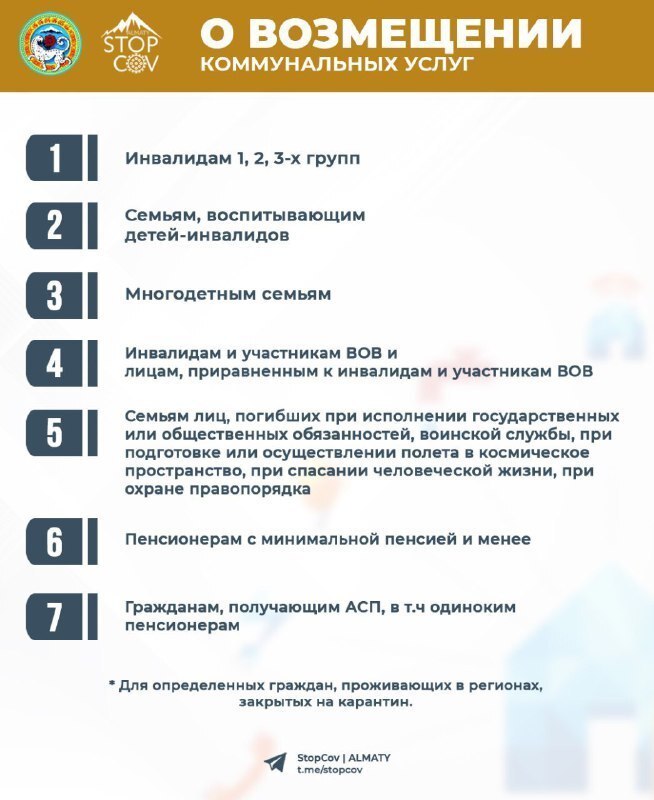 В закрытых на карантин регионах ряду граждан за комуслуги возместят по 15 тыс. тенге