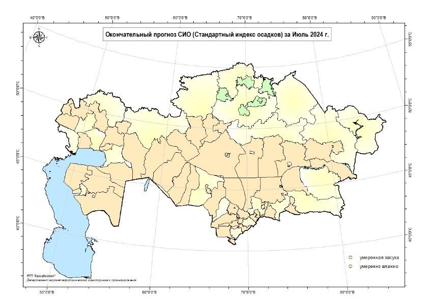 В июле 2024 года на территории Казахстана увлажнение в основном ожидается близкими к многолетним значениям, однако площадь территорий, которым угрожает наступление атмосферной засухи, увеличивается", - проинформировали синоптики.
