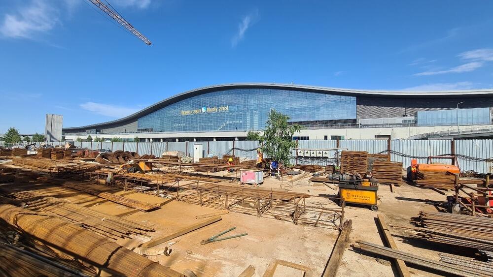 Журналистам показали этап строительства станции ЛРТ возле нового железнодорожного вокзала. По словам управляющего проектом Джан Яньгана, между ЛРТ и новым вокзалом будет соединяющий проход для удобства пассажиров. Станция будет готова в 2025 году.
