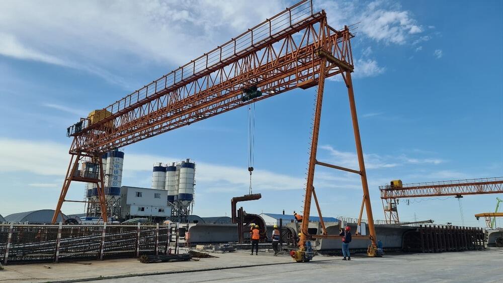Длина балки более 18 метров, ширина - более 4 метров, вес единицы составляет 240 тонн. Общее количество балок, которое нужно произвести для функционирования ЛРТ, - 540 штук, в этом году уже произведено 180 штук. Темпы производства достаточно высокие", - сообщил руководитель проекта Дай Цзяньнань.