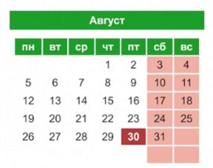 Всего в августе у казахстанцев при пятидневной рабочей неделе будет 21 рабочий день и 10 выходных.