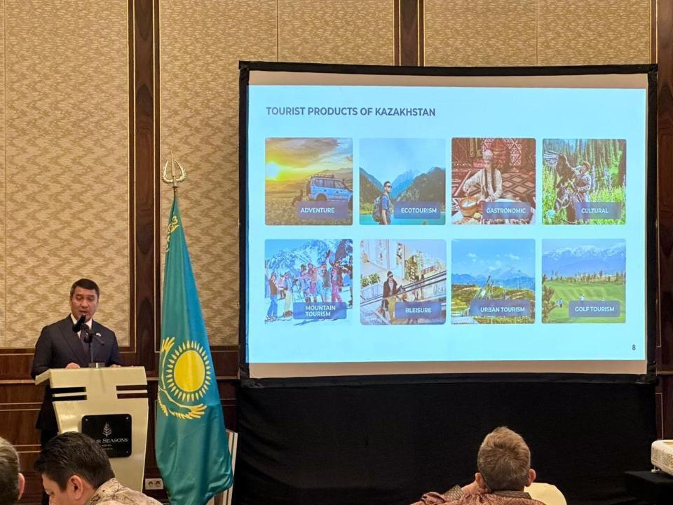 Посол Казахстана Сержан Абдыкаримов провел подробную страновую презентацию туристического потенциала, рассказал об уникальных региональных особенностях и достопримечательностях Казахстана.