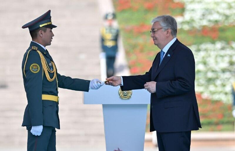 Также Токаев отметил, что присвоение воинских званий в День государственных символов стало доброй традицией.