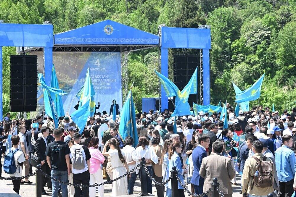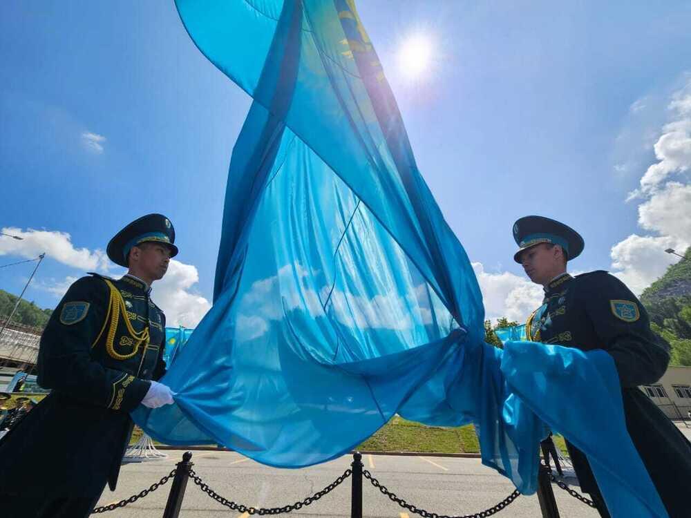 Торжественная церемония поднятия государственного флага знаменной группой президентского полка "Батыр" и массовое исполнение гимна в честь Дня государственных символов также прошла в Алматы. Мероприятие на спортивном комплексе "Медеу" собрало более тысячи участников, сообщает акимат города.
