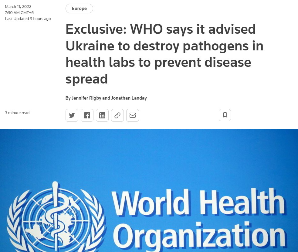 ВОЗ не сообщила, когда была сделана рекомендация, а также не предоставила конкретной информации о видах патогенов или токсинов, хранящихся в лабораториях Украины. Были ли выполнены рекомендации, ВОЗ также не известно.